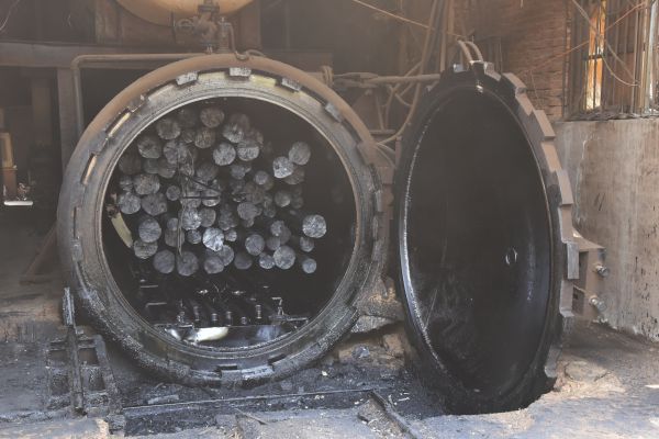 防腐處理:將處理好的木材裝入密閉的壓力防腐罐中,用真空壓力將防腐藥劑壓入木材內(nèi)部,使防腐劑滲透進入木材的細胞組織內(nèi),與木材纖維緊密結(jié)合,達到防腐的目的。